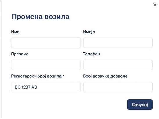 - возачу (опционо: име, презиме, имејл и број возачке дозволе).